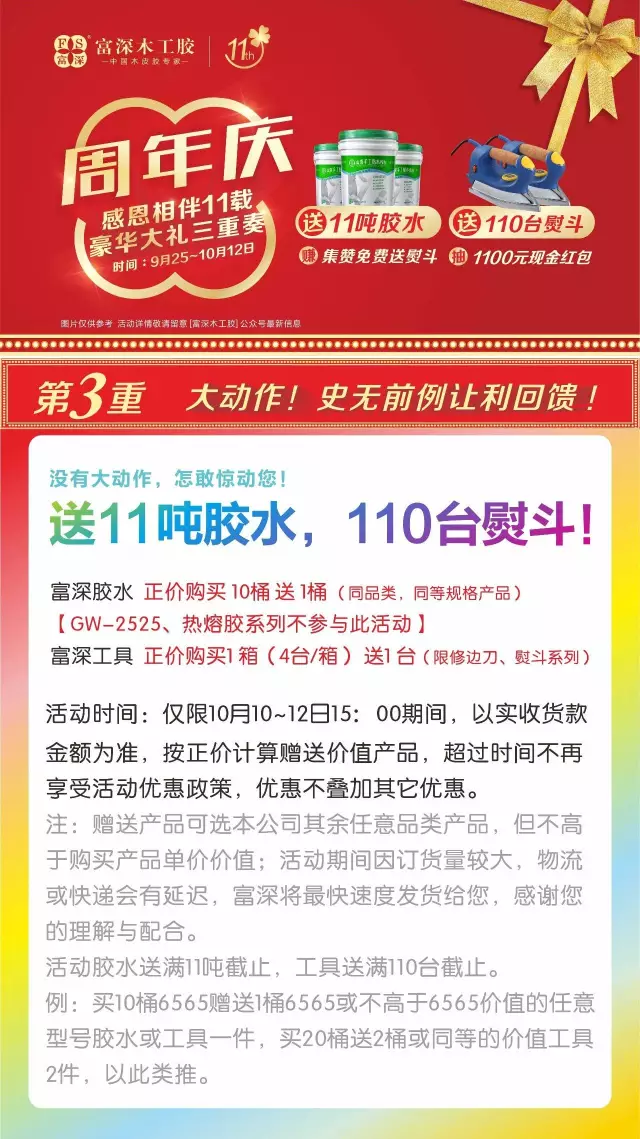 富深11周年庆典活动第三重!狂送胶水11吨,熨斗110台!
